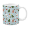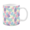 Ceramic mug with a whimsical Easter design featuring bunnies, eggs, and flowers