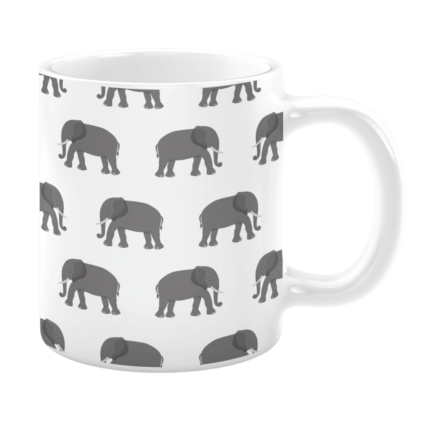 Enjoy your favorite beverage with this ceramic mug featuring a timeless pattern of gray elephants in a walking pose. The neutral tones and clean design make it a versatile addition to any kitchen or office space. Perfect for animal lovers and those who appreciate simple, nature-inspired aesthetics, this mug brings a subtle yet elegant charm to your daily coffee or tea routine.