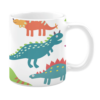 Ceramic mug with a playful dinosaur pattern on a blue background